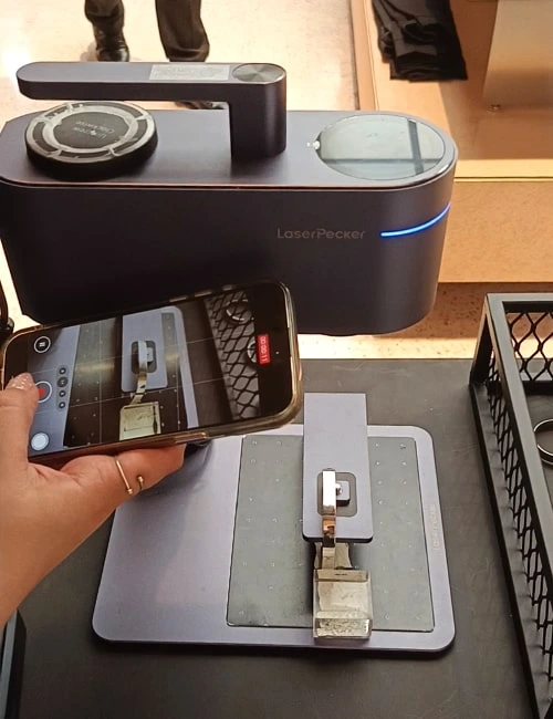 Una vez capturados los datos en el software del equipo láser, se procede a realizar el grabado. Al finalizar, el producto personalizado se entrega directamente al invitado.